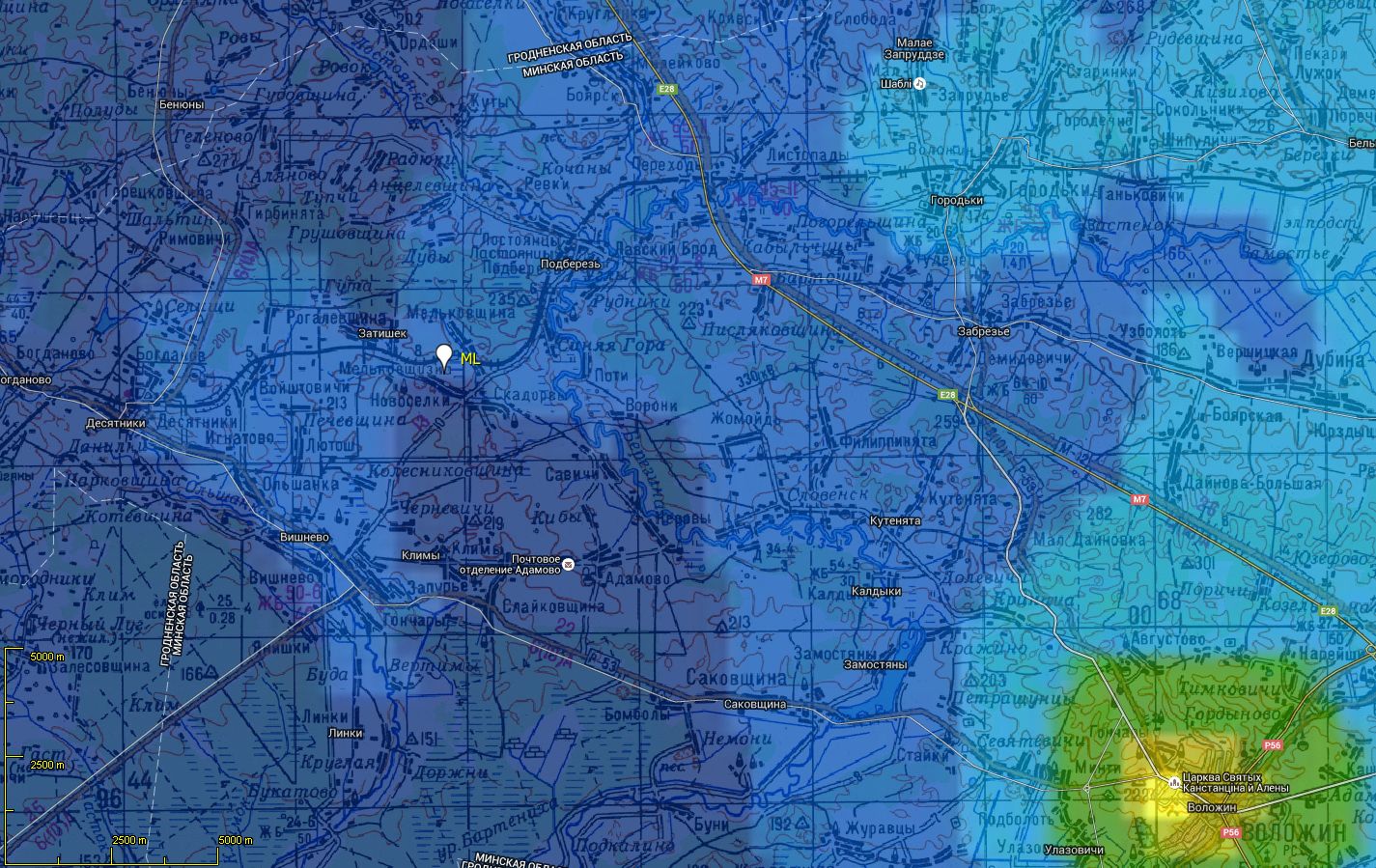Площадка ML довольно велика -- это поле размерами 5×5 км, располагается между двумя реками: Ольшанка на юго-западе и Березина на северо-востоке. От о.п. Мельковщизна до площадки ML около 1 км -- нужно пройти за "будку" о.п. на юг через пролесок по дороге -- после него сразу открывается взору поле. Это и есть ML.