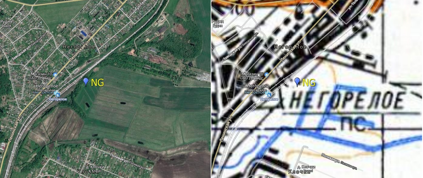 Наблюдательная площадка NG была разведана в ходе 40-й Одиссеи в поисках тёмных площадок в начале января 2020 г. Площадка находится возле ж/д станции Негорелое.