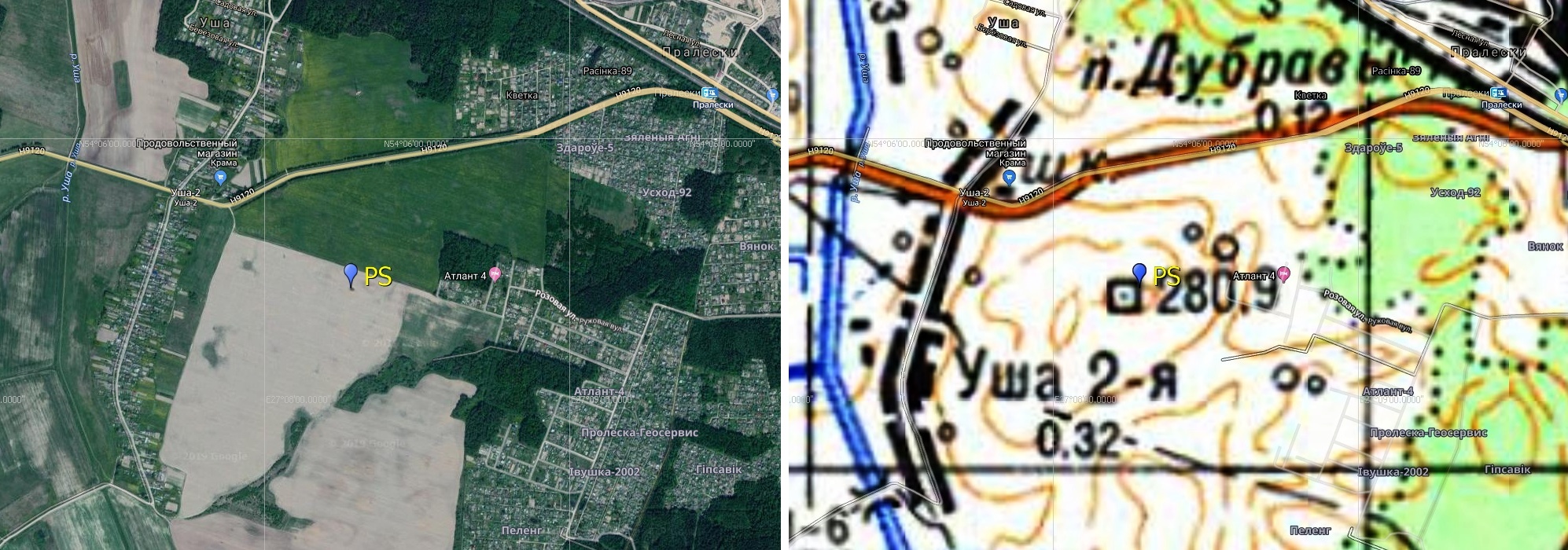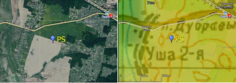 Наблюдательная площадка PS была разведана в ходе 42-й Одиссеи в поисках тёмных площадок в конце января 2020 г. Площадка находится на возвышенности в 1,5 км на SWW от о.п. Пралески.