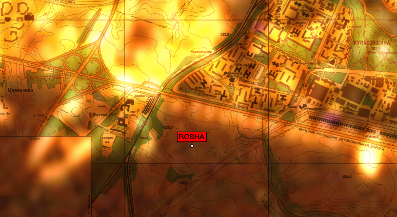 После того, как перешли ж/д пути, проходим немного налево и спускаемся в откос, проходя через небольшой лесок. Открывшееся поле -- и есть Rosha.
