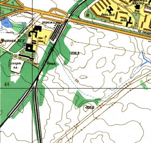 Через 20-30 минут приезжаем на предпоследнюю остановку этого маршрута ("Курчатова"), рядом с общежитиями БГУ №3 и №10. Переходим дорогу и двигаемся от общежитий к ж/д.